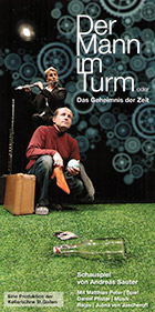 Zeit ins Spiel bringen - Es geht um die Zeit. Das ist schnell gesagt. Aber Theater will ja nicht nur reden. Kann man Zeit wortwörtlich «ins Spiel bringen»? Nichts weniger haben sich Matthias Peter (Spiel), Daniel Pfister (Musik) und Juana von Jascheroff (Regie) vorgenommen. Der Taktgeber ist der Mann im Turm im schwarzen Mantel und mit schwarzem Zylinder. Er hat ein Metronom. Aber er hat auch Flöten und klingende Metallplatten, denn hier geht es nicht um das gleichbleibende Metrum, sondern um den Rhythmus. Es geht um die Melodie in Raum und Zeit- oder in der Übersetzung f&uum;r den Darsteller: um die Lebenslinie über dem Pulsschlag. Die grosse lange Linie zeichnet ein Paar, das sich liebt, ein Kind zeugt, sich trennt und sich wiederfindet. Doch genauso wichtig wie die Zeitspanne ist der kurze Moment, in dem sich alles zeitgleich abspielt. Denn jeder hat seine Zeit: das Kind, der Mann mit der grünen Krawatte, das alte Paar, der Hund.